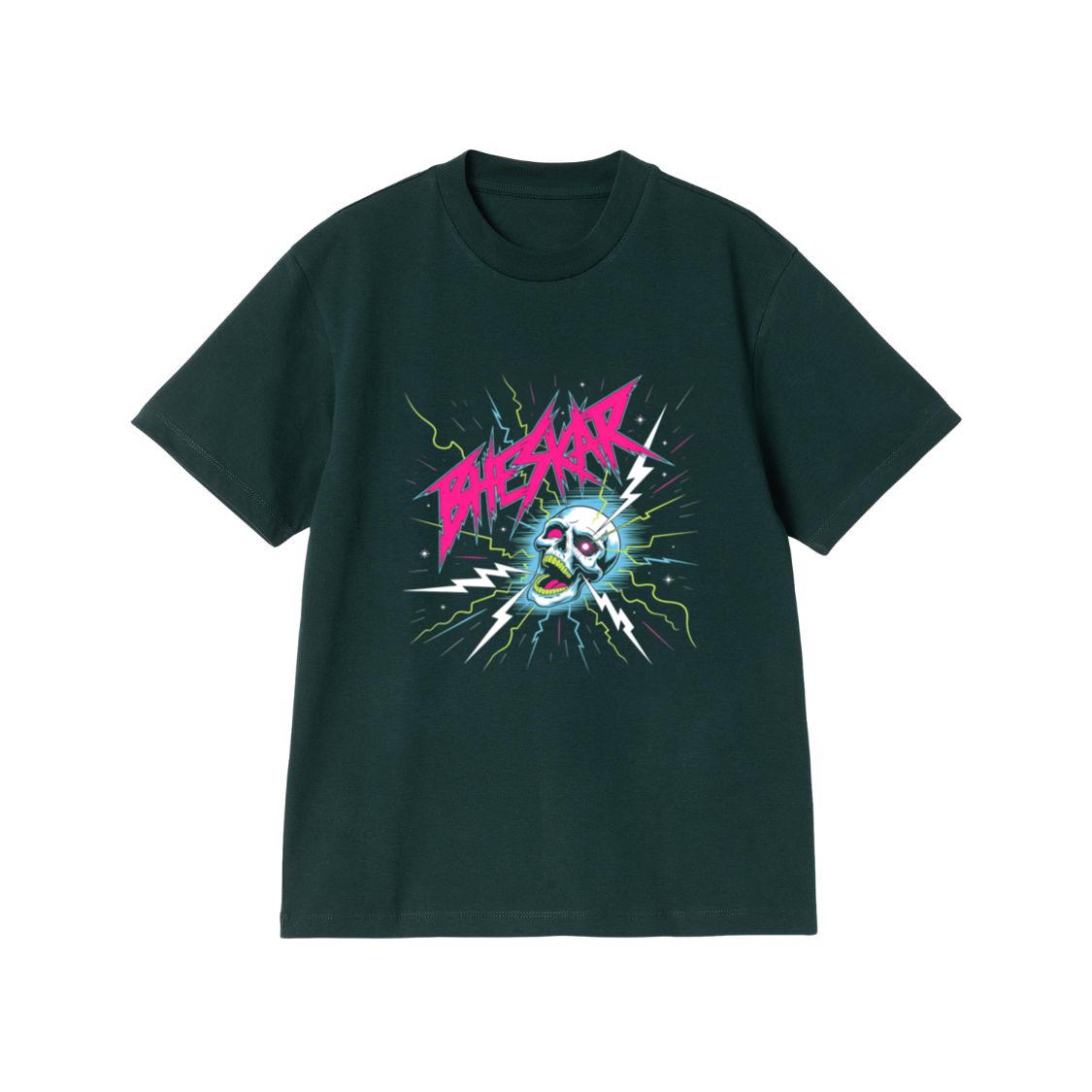 Bizarre Skull Neon Lightning Graphic T-Shirt